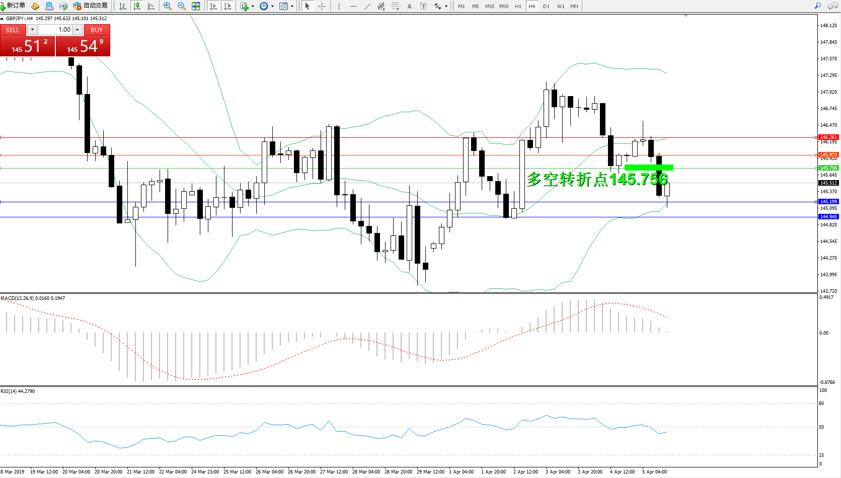 交易策略:145.756下方看跌,目标145.199144.945