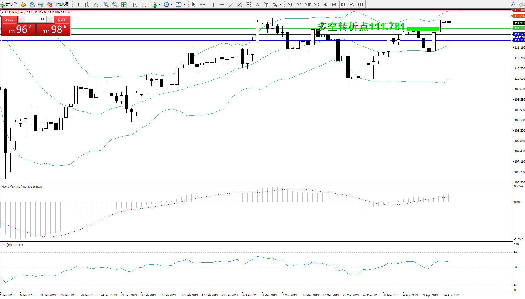 美元兑日元窄幅波动,盘中创下35日以来的高点112.1,因避险情绪大幅回落导致日元大幅回落,反而推动了美元兑日元走高。在4月末日本10天假期结束前,日元很容易走强。因为美国和欧洲出现新的贸易紧张形势以及IMF下调全球经济增长预估,使得日元周中受到投资者青睐。同时4月末至5月初日本将迎来前所未有的10天假日,迎接新天皇德仁继位,在此之前日元寻获进一步支撑。此外日企在保守运营业务,当前阶段很多企业自然会卖出美元在10日假期结束前,日元很容易走强。
