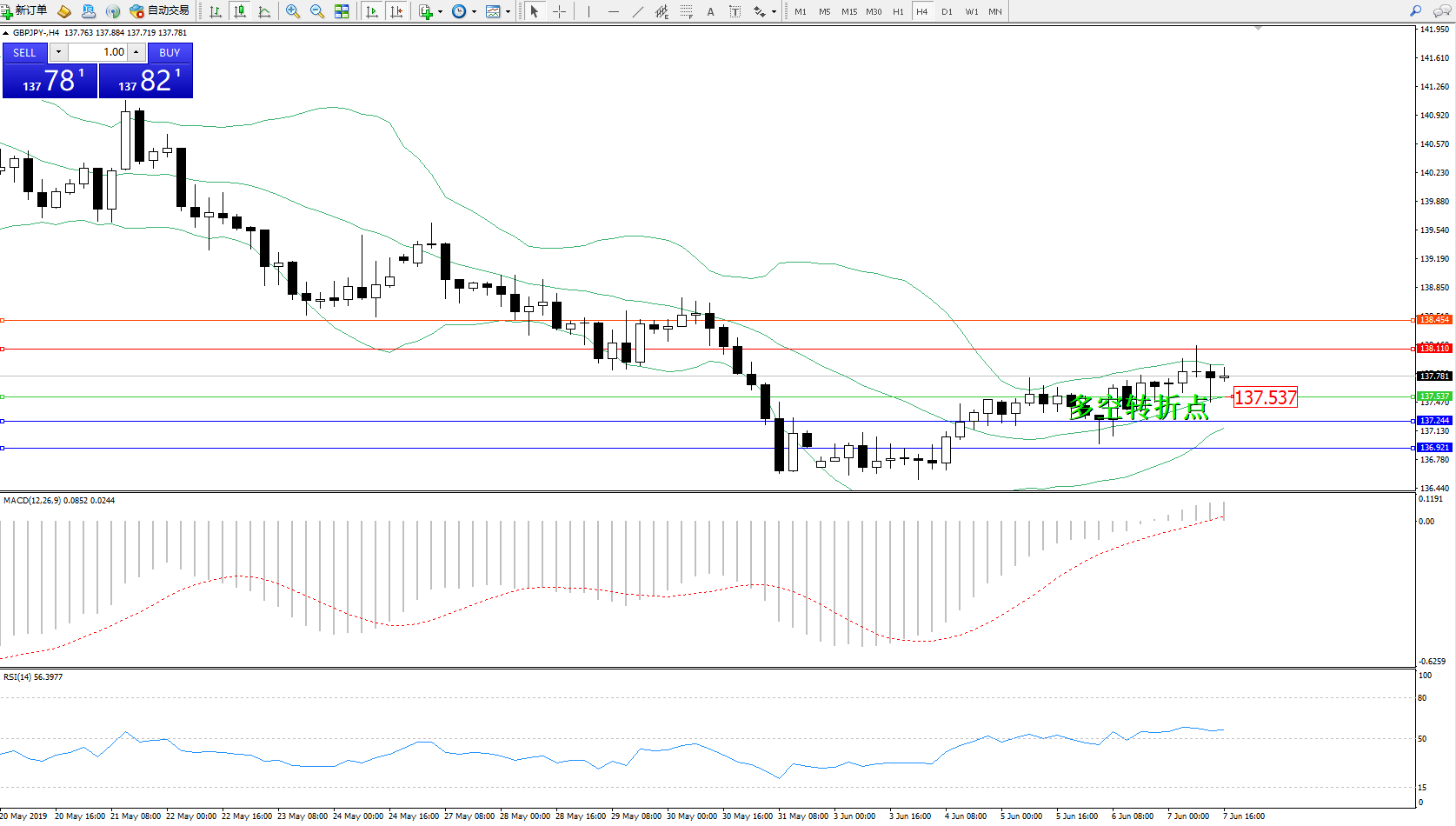 交易策略:137.537上方看涨,目标138.110、138.454