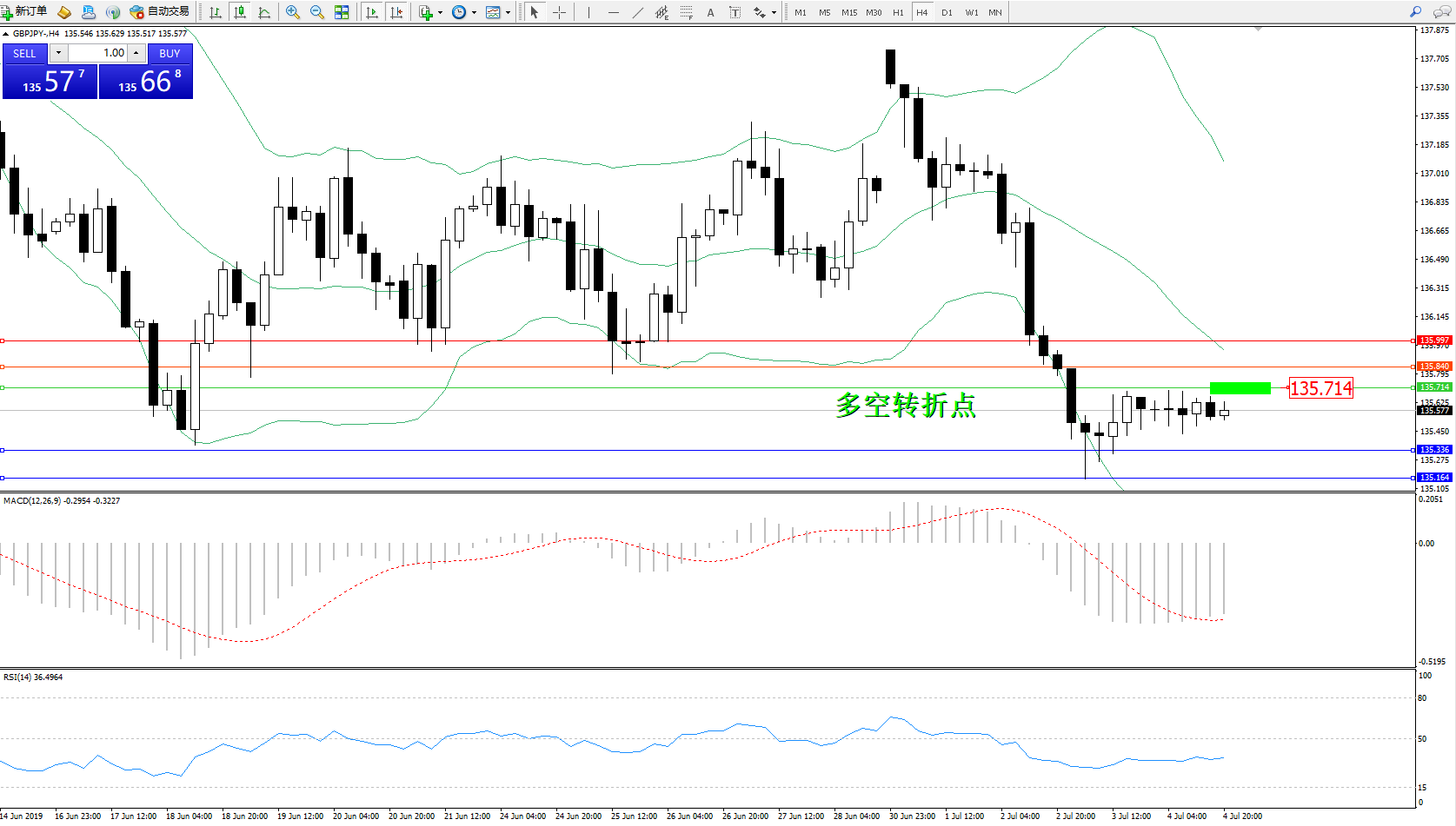 交易策略:135.714下方看跌,目标135.336135.164