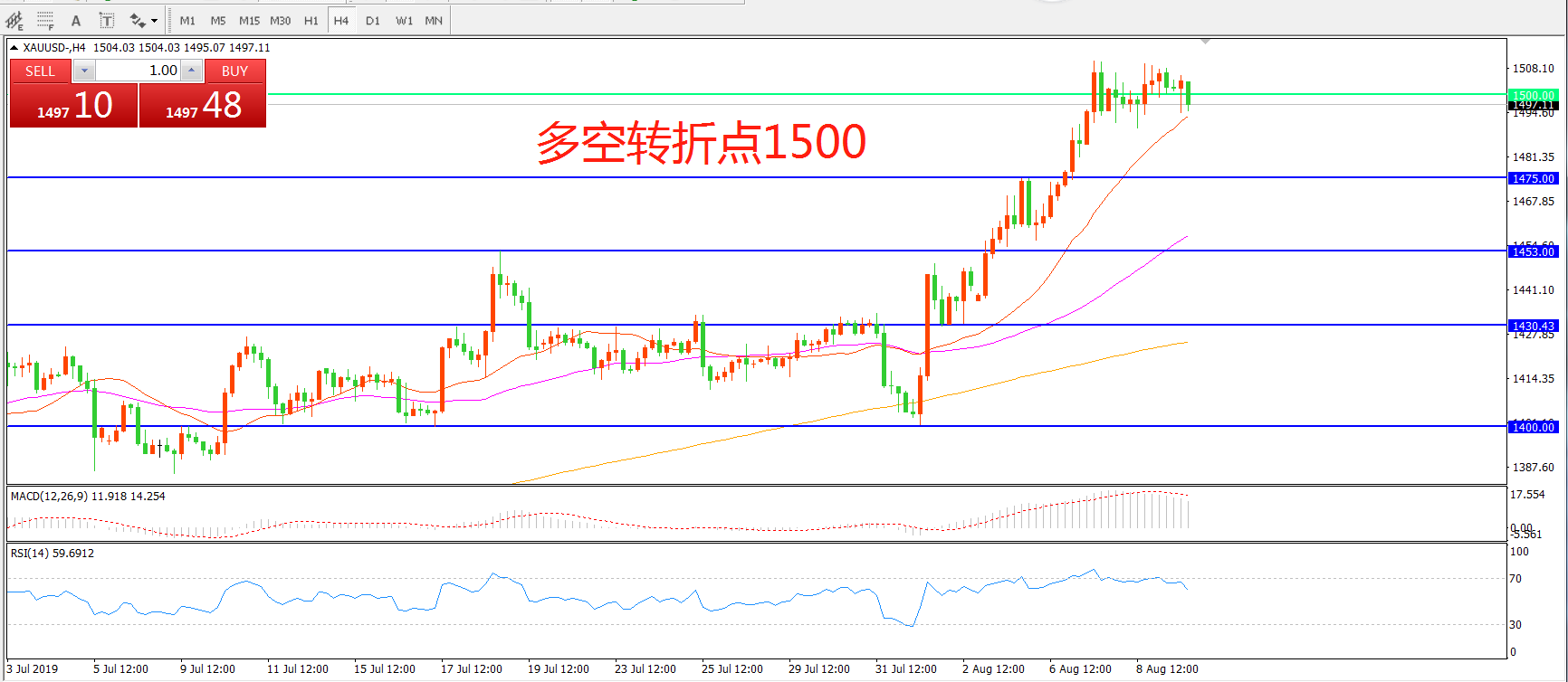 备选策略:在1500.00之下看跌,目标1475.00   1453.00