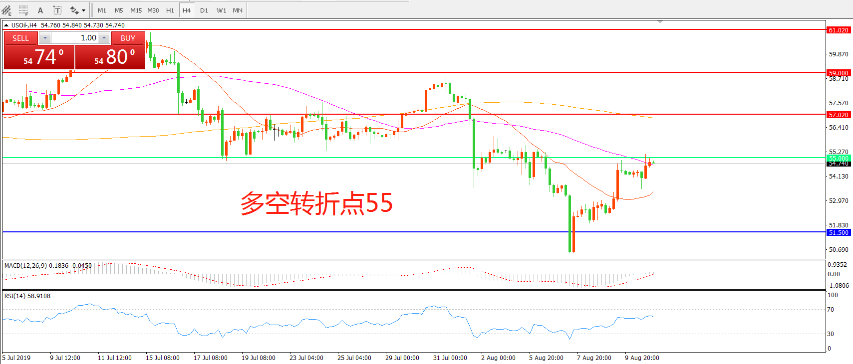 交易策略:在55.00之上看涨,目标57.00   59.00
