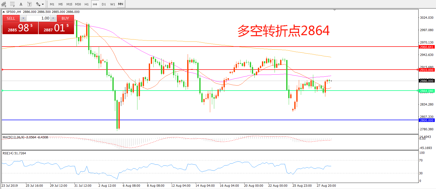 多空转折点:2864.00