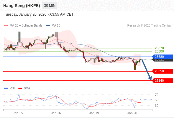 在 26680 之下,看跌,目标价位为 26350 ,然后为 26140 。