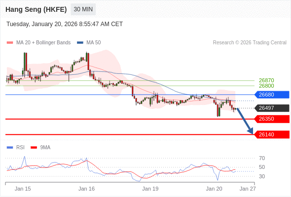 香港恒生指数期货 当日内: 短期关键阻力位在26680。