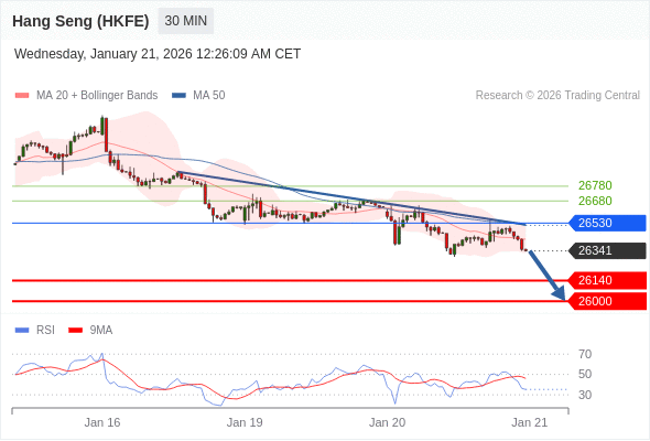 在 26530 之下,看跌,目标价位为 26140 ,然后为 26000 。