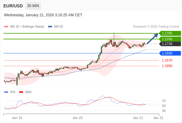 在 1.1695 之上,看涨,目标价位为 1.1745 ,然后为 1.1765 。