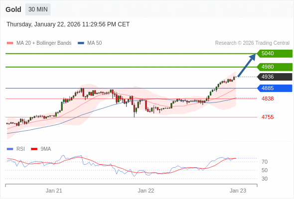 黄金现货 当日内: 目标位为4980。