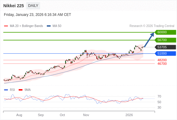 Nikkei 225 短线: 在51000之上,看涨。