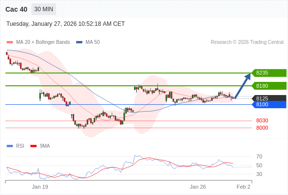 Cac 40 当日内: 超短线(当日内)支撑位在8100附近。