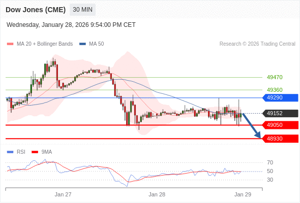 在 49290 之下,看跌,目标价位为 49050 ,然后为 48930 。