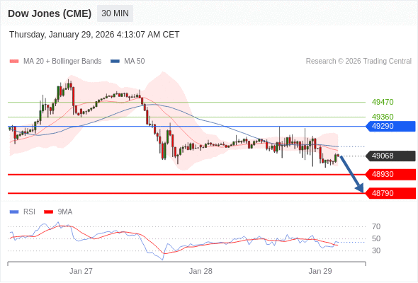 在 49290 之下,看跌,目标价位为 48930 ,然后为 48790 。