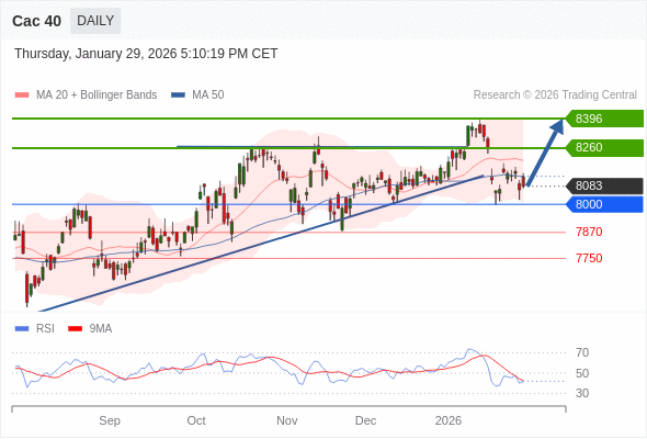 交易策略: 在 8000 之上,看涨,目标价位为 8260 ,然后为 8396 。