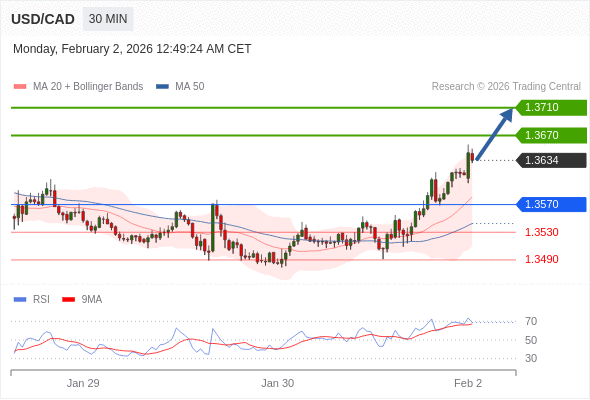 在 1.3570 之上,看涨,目标价位为 1.3670 ,然后为 1.3710 。