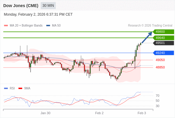 在 49240 之上,看涨,目标价位为 49640 ,然后为 49800 。