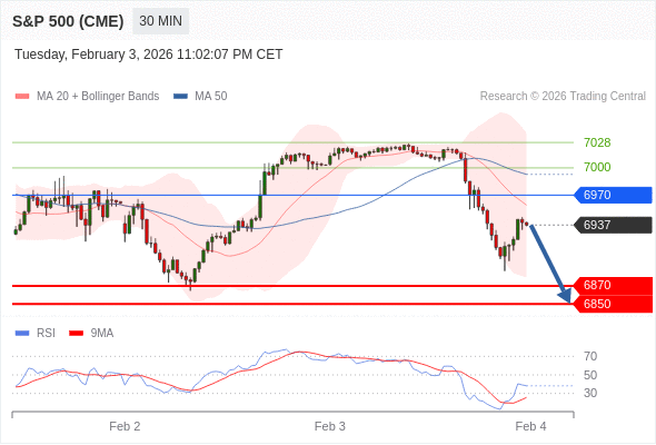 在 6970 之下,看跌,目标价位为 6870 ,然后为 6850 。