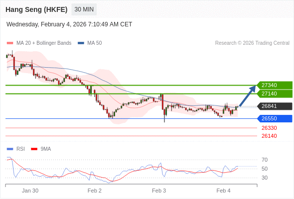 在 26550 之上,看涨,目标价位为 27140 ,然后为 27340 。