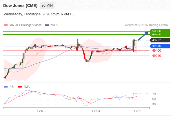在 49540 之上,看涨,目标价位为 49900 ,然后为 50000 。
