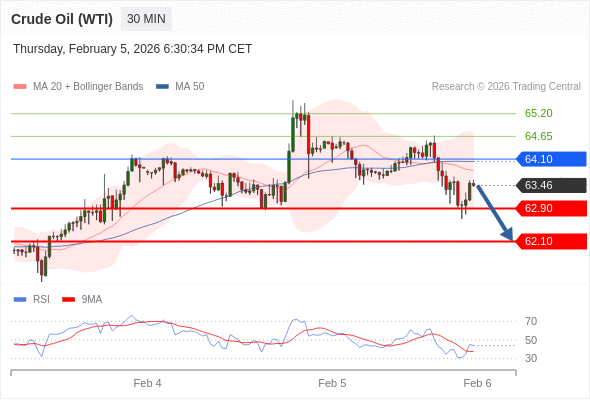 交易策略: 在 64.10 之下,看跌,目标价位为 62.90 ,然后为 62.10 。