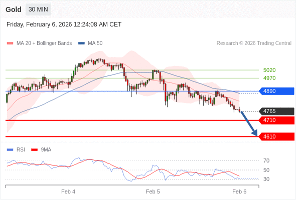 交易策略: 在 4890 之下,看跌,目标价位为 4710 ,然后为 4620 。
