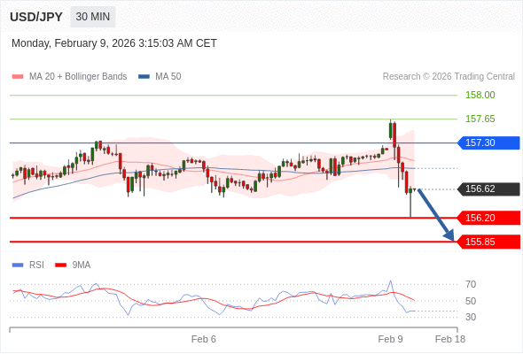 在 157.30 之下,看跌,目标价位为 156.20 ,然后为 155.85 。