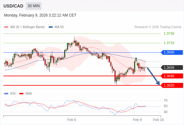 在 1.3690 之下,看跌,目标价位为 1.3640 ,然后为 1.3620 。