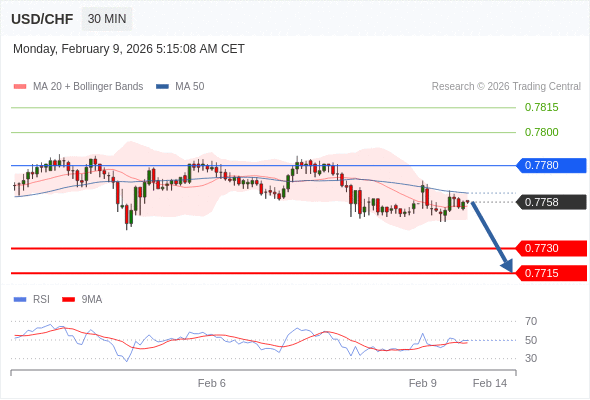 在 0.7780 之下,看跌,目标价位为 0.7730 ,然后为 0.7715 。