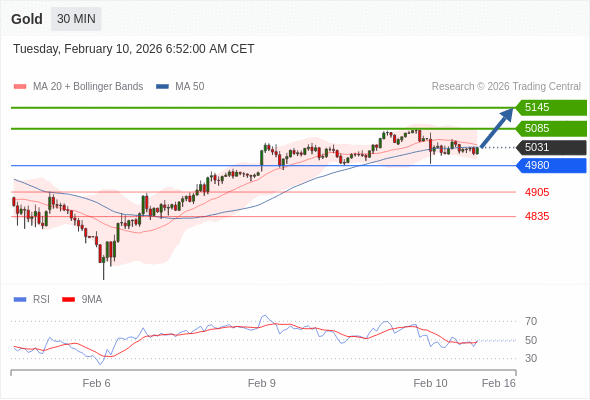 在 4980 之上,看涨,目标价位为 5085 ,然后为 5145 。