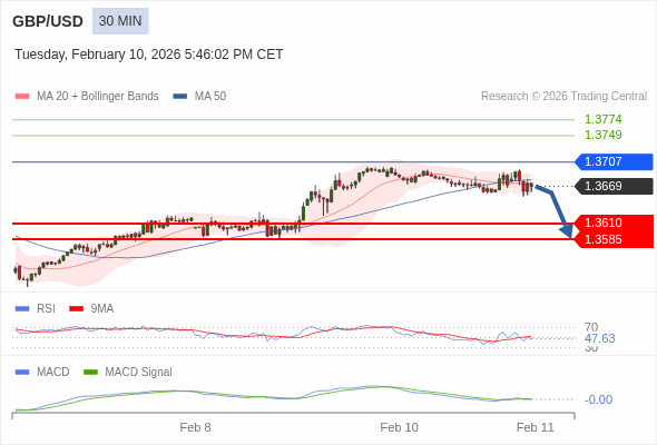 英镑/美元 当日内 : 看跌,在 1.3707 之下。