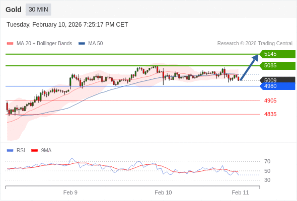 在 4980 之上,看涨,目标价位为 5085 ,然后为 5145 。