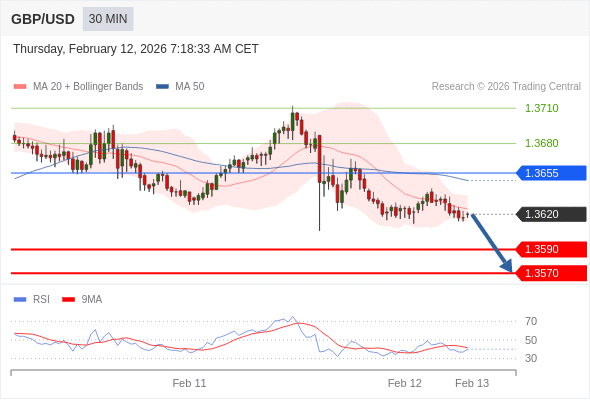 在 1.3655 之下,看跌,目标价位为 1.3590 ,然后为 1.3570 。
