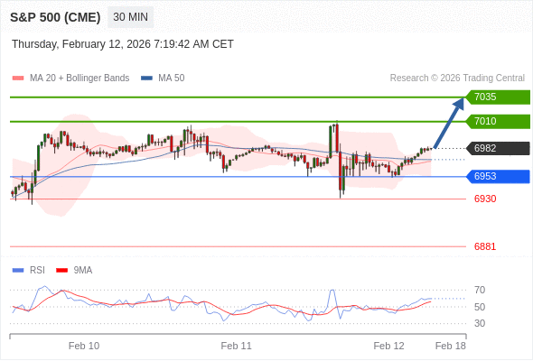在 6953 之上,看涨,目标价位为 7010 ,然后为 7035 。
