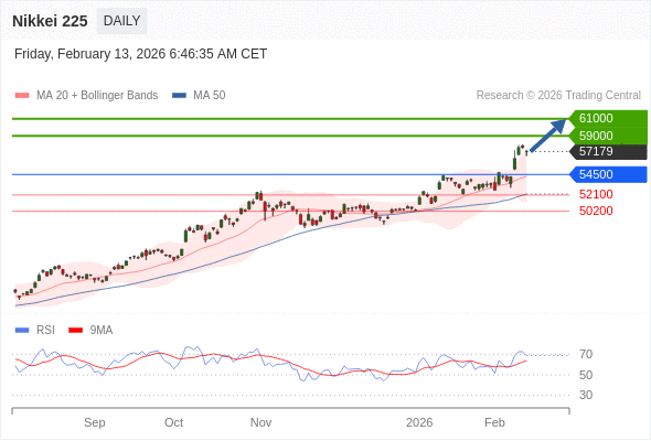 在 54500 之上,看涨,目标价位为 59000 ,然后为 61000 。