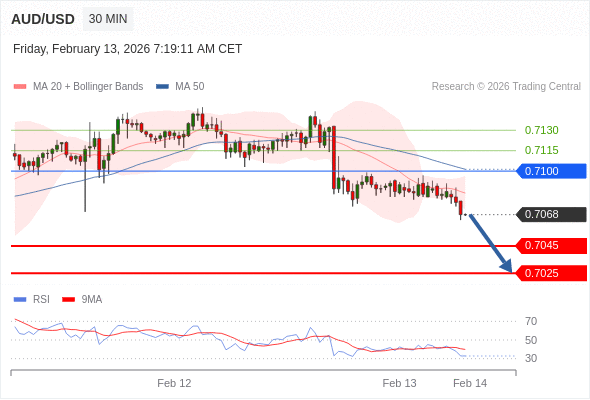 交易策略: 在 0.7100 之下,看跌,目标价位为 0.7045 ,然后为 0.7025 。