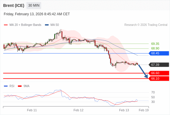 在 68.45 之下,看跌,目标价位为 66.60 ,然后为 66.10 。