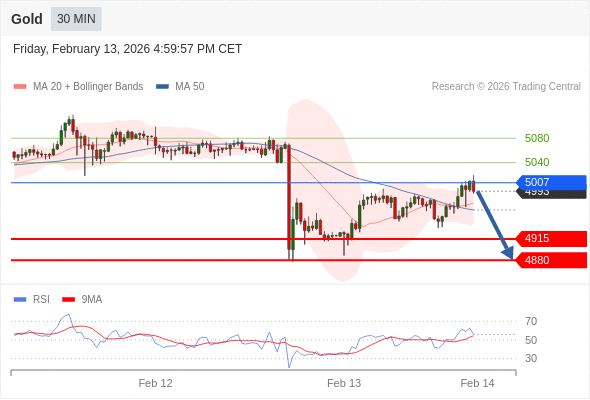 在 5007 之下,看跌,目标价位为 4915 ,然后为 4880 。