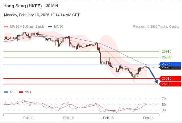 香港恒生指数期货 当日内: 短期关键阻力位在26630。