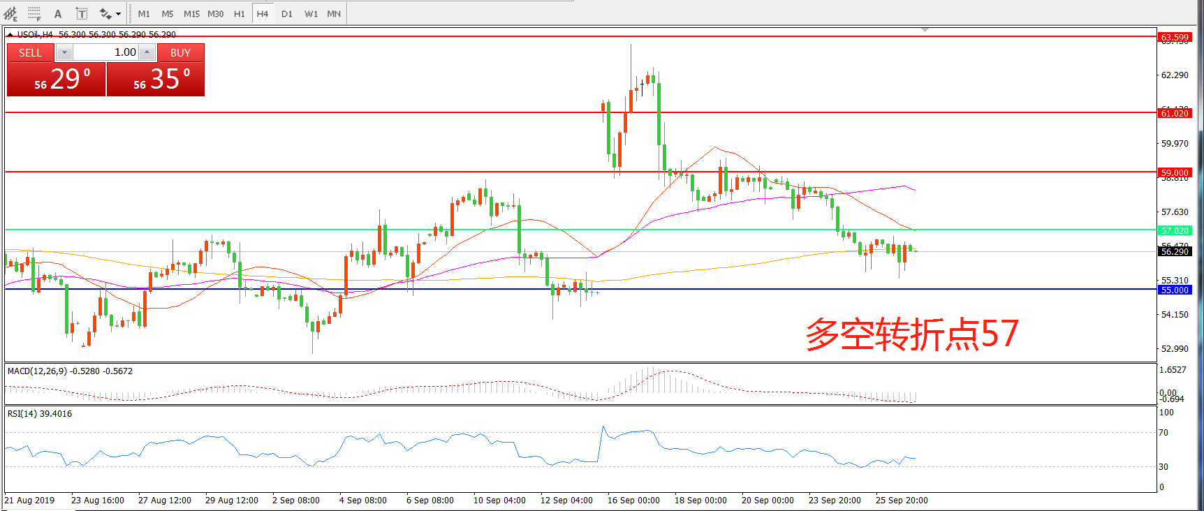 多空转折点:57.00