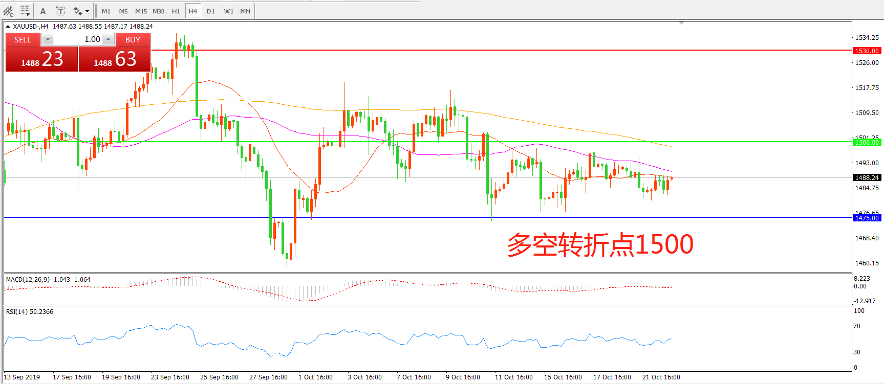 多空转折点:1500.00