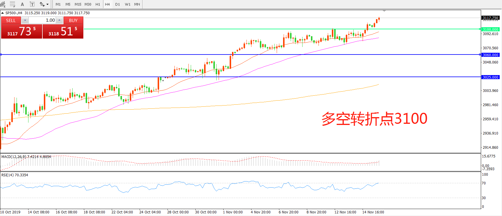 多空转折点:3100.00