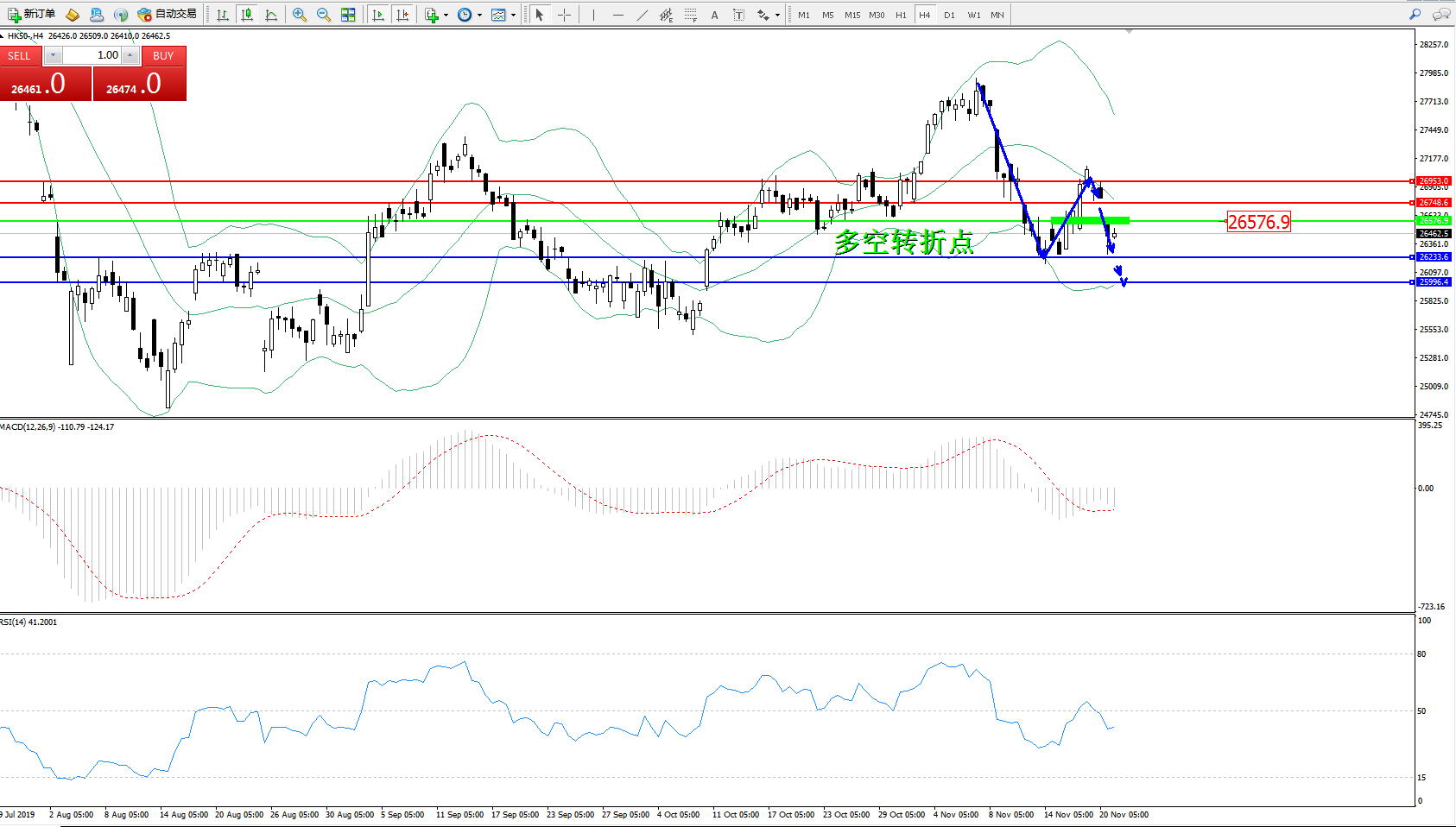 恒指HK50 ——4小时K线图显示: