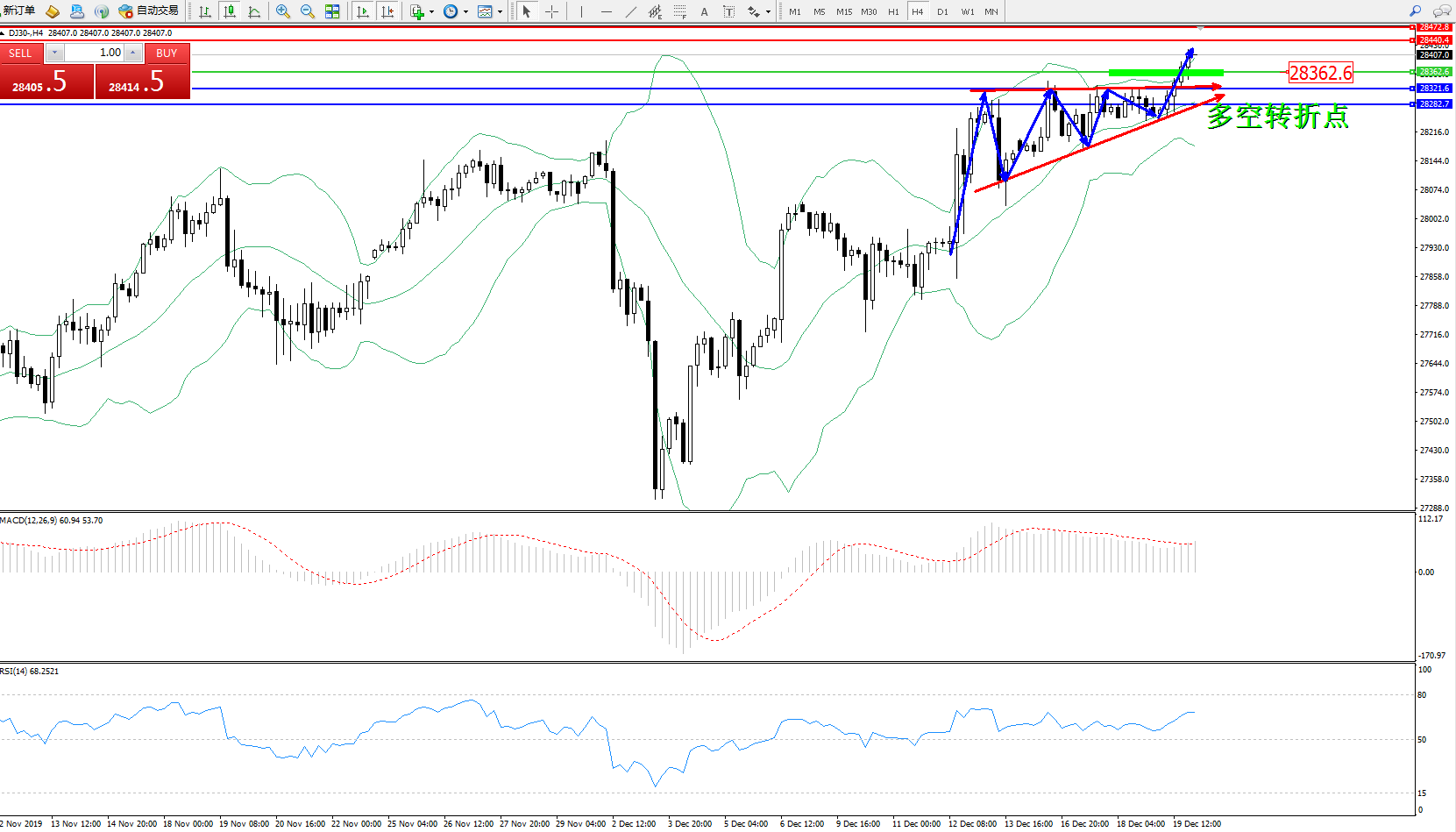 道琼斯指数12月19日(周四)收盘上涨137.80点,涨幅0.49%,报28377.09点。美国股市再次创下新纪录,投资者追逐这波今年以来令市值增加逾5万亿美元的涨势。投资者知道季节性因素不错,知道宏观形势--全球增长和贸易状况有所改善。令人担忧的是,这其中很多已经在市场有所反映。市场关注将于周五出炉的美国第三季度GDP数据。疲弱的制造业活动数据和总统特朗普被众议院弹劾未影响股指走势。
