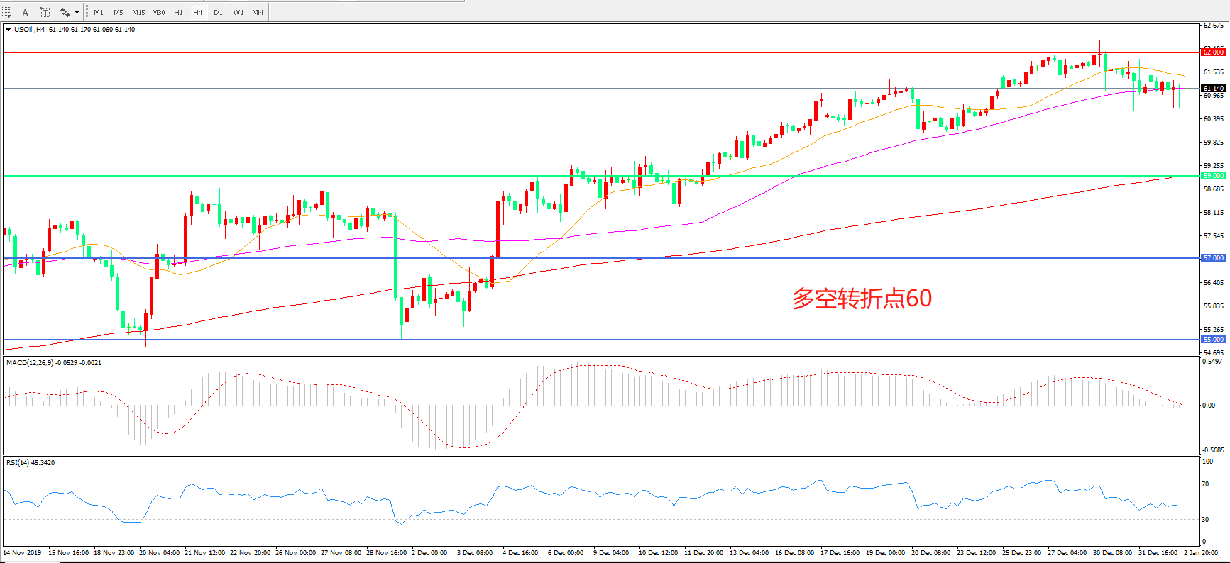 交易策略: 在59.00 之上看涨,目标62.00       65.00