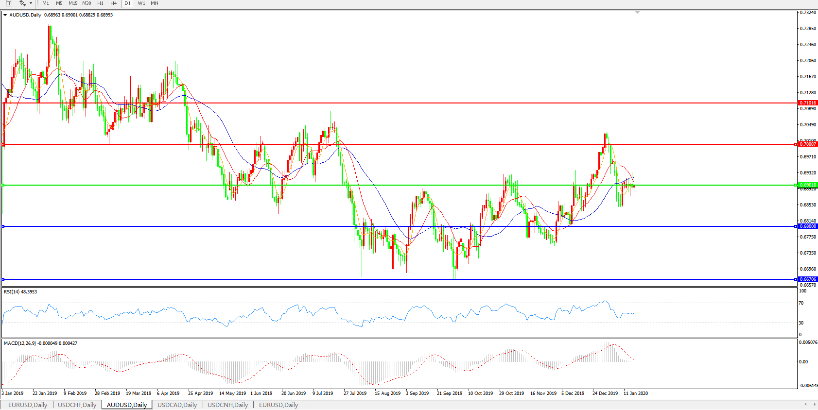 备选策略:0.6900上方看涨,目标0.7000、0.7100