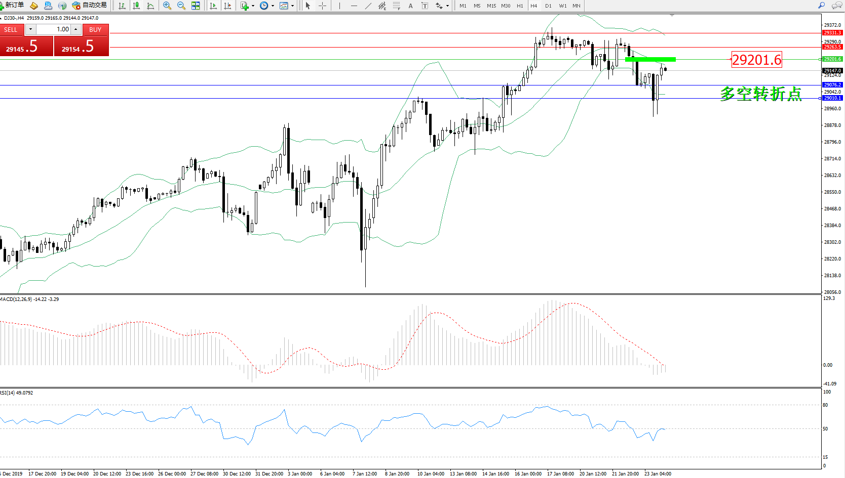 道琼斯指数123日(周四)收盘下跌26.20点,跌幅0.09%,报29160.09点。国内冠状病毒疫情发酵,令全球股市纷纷走低,而美国两年期和十年期国债收益率均跌至两周新低。美国30年期国债价格上涨超1个基点,收益率跌至七周新低。受影响的经济体将出现很大的动荡;这给整个市场增加了一定程度的不确定性,促使人们考虑更多的安全资产,以防疫情进一步扩大。