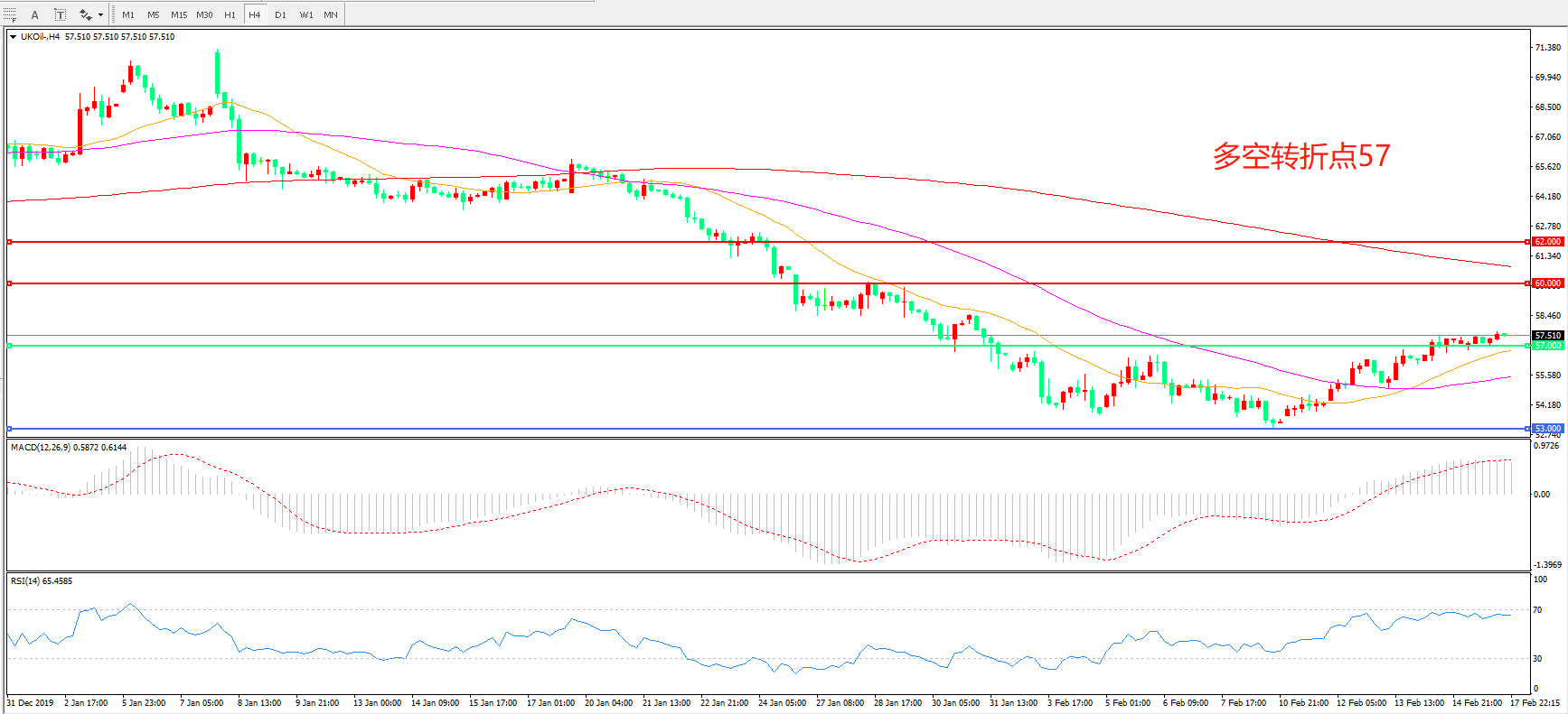 多空转折点:57.00