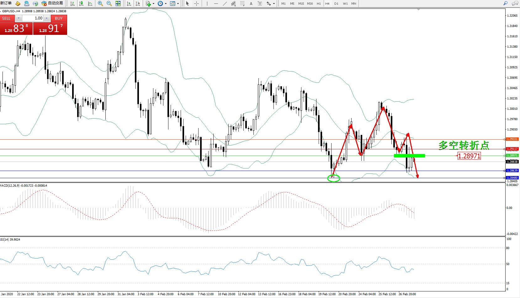 交易策略:1.28791下方看跌,目标1.28639、1.28480