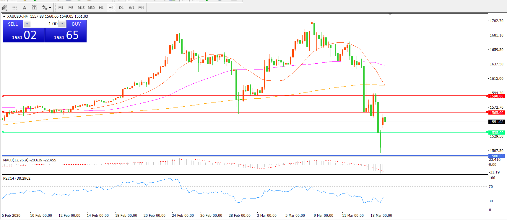 现货黄金XAU/USD 4小时图
