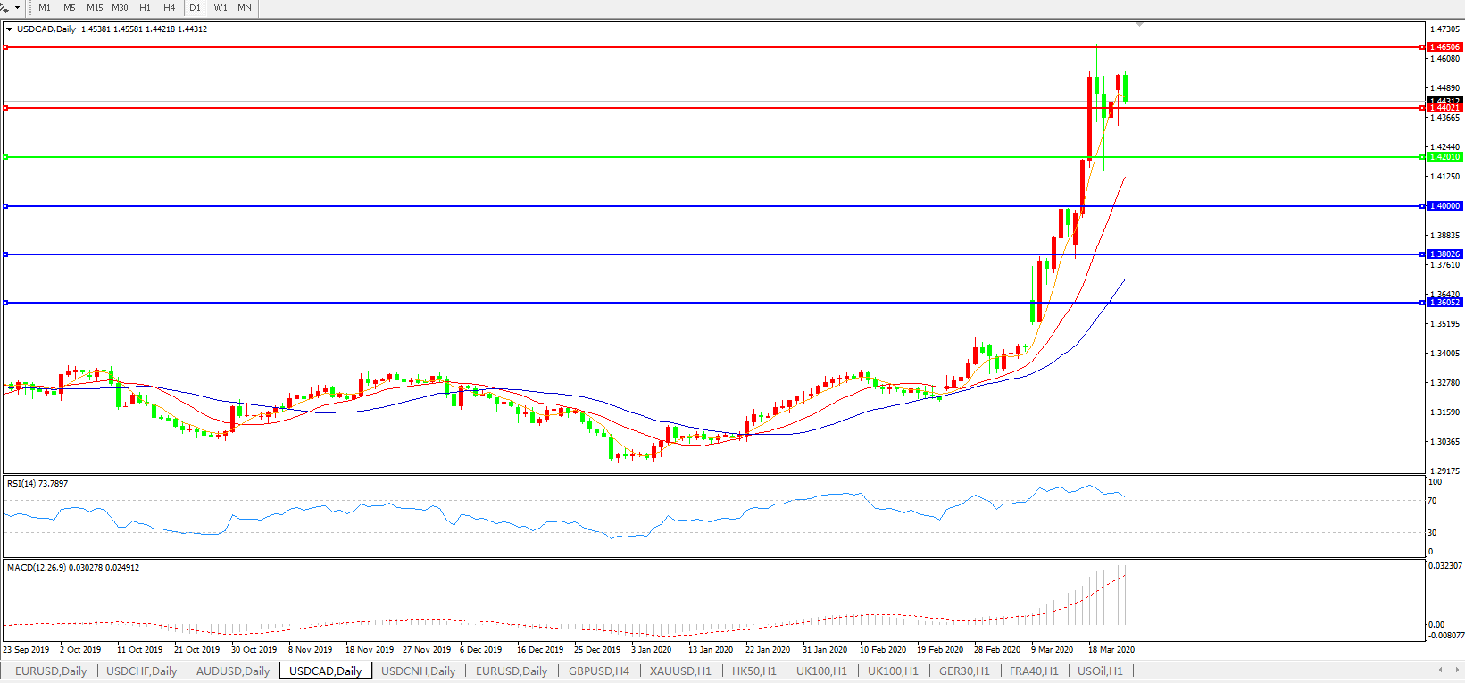 美元兑加元USDCAD    日线图: