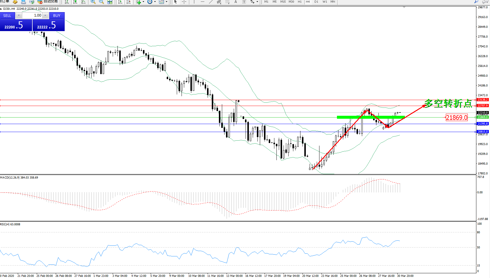 道琼斯指数330日(周一)收盘上涨690.70点,涨幅3.19%,报22327.48点。周一美股全线收高,投资者继续追踪冠状病毒的传播状况及其经济影响。市场仍在消化美国2万亿美元刺激方案,美联储前期推行了降息至零、无限QE等前所未有的宽松措施,但未来操作空间已经不大。现在轮到财政刺激政策上阵,目的仍是避免疫情对经济造成更大的伤害。穆迪下调总值6.6万亿美元的美国非金融企业债务评级展望,由稳定降为负面。穆迪表示,下调评级展望是要反映在新冠肺炎疫情冲击下,美国经济陷入衰退,企业整体遭到打击,以致违约风险上升的因素。